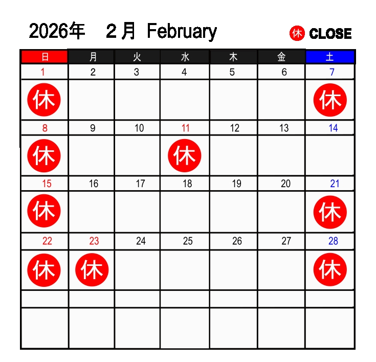 2026.1.1 営業日カレンダーを更新しました。