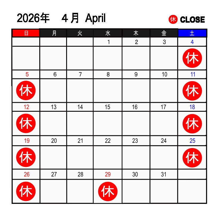 2026.3.1 営業日カレンダーを更新しました。